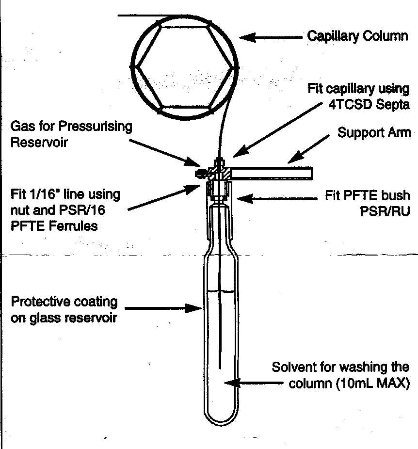 We've used SGE CWR-10 column rinsing kit, part #0625026 (Agilent #9301-0982). We use dichloromethane for our methyl-silicone type columns. Helium pressure is used to force the solvent back through the capillary.