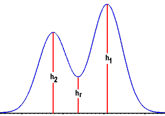 the valley from the baseline (as a percent of the peak heights)